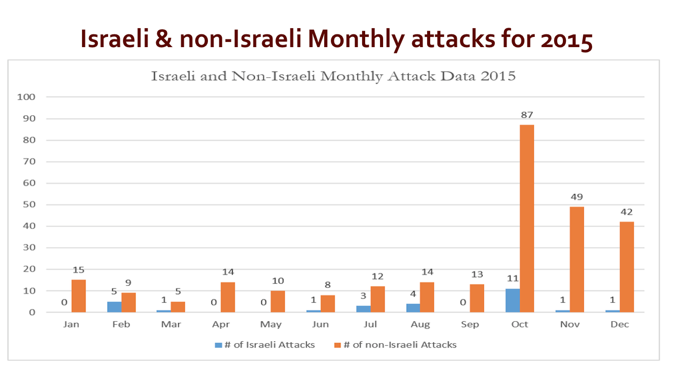 Graph of monthly terror-attacks in Israel for 2015